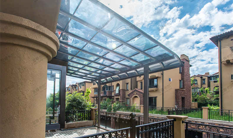 首先,晴天的話可以起到隔熱防紫外線高透光遮陽的作用。并不是所有的雨棚都是這樣的作用,至尊卡爾用的材質是聚碳酸酯板,比其它材質要好很多。這個大家可以了解一下。