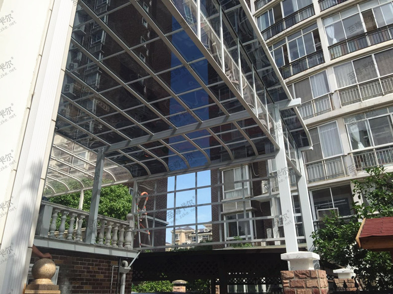 耐力板雨棚能抗紫外線隔熱。大家都知道鋼化玻璃雨棚一般都是透明的,在整個(gè)雨棚剛做好,會(huì)給人以眼前一亮的感覺(jué),不過(guò)值得我們深思熟慮的是,玻璃并不能抗紫外線隔熱,甚至溫度過(guò)高,還會(huì)發(fā)生自爆,但因?yàn)楹裰氐母杏X(jué),因此多被安裝在辦公樓門口,但頂部的玻璃極易變黃,從而造成美觀上的體驗(yàn)度差。