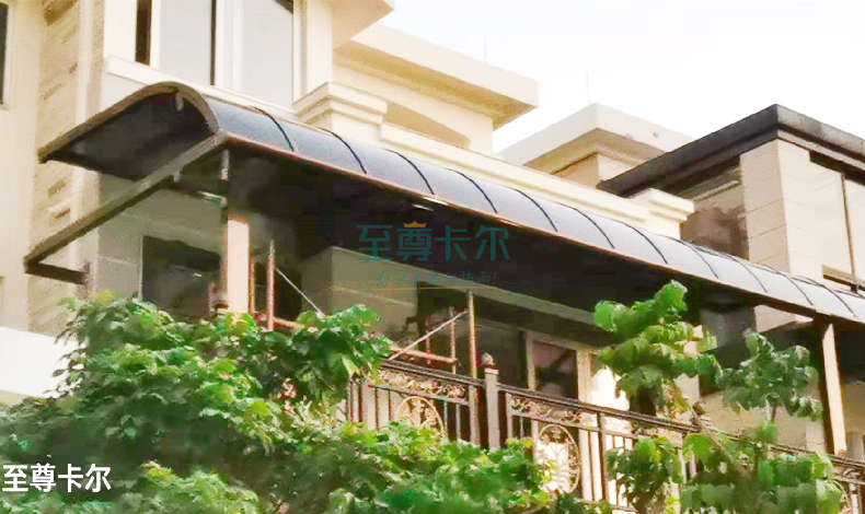二是選對材料,業主之前沒有了解過,所以不知道,其實雨棚最好選用鋁合金骨架和聚碳酸酯板材組合的,鋁合金永不生銹,而且強度大很牢固,聚碳酸酯板材抗沖擊耐用不變色,透明的板材在遮雨隔熱防紫外的同時保留光照,采光不受影響,就算雨棚搭建起來了也不影響晾曬衣服和曬太陽。